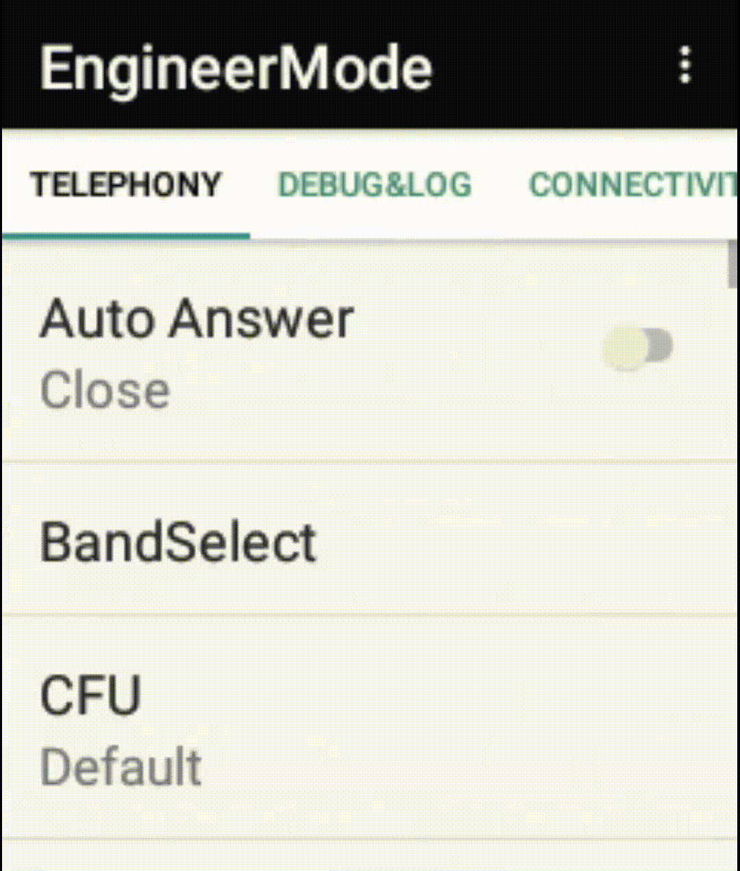 3.开启EngineerMode软件在选项栏找到DEBUG&LOG